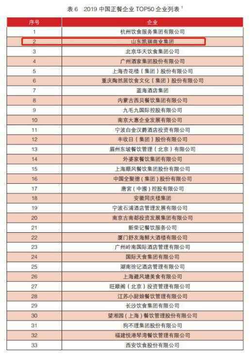 齐鲁网·闪电新闻10月22日讯 10月21日,中国饭店协会公布了《2020中国餐饮业年度报告》。报告显示,在2020国内各地区餐饮收入(2019财年)排行中,山东省以4430.46亿元位居全国首位,同比增长10.9%。在“2019中国正餐企业TOP50企业列表”中,山东凯瑞商业集团排名第二,山东舜和酒店集团有限公司排在第34位。